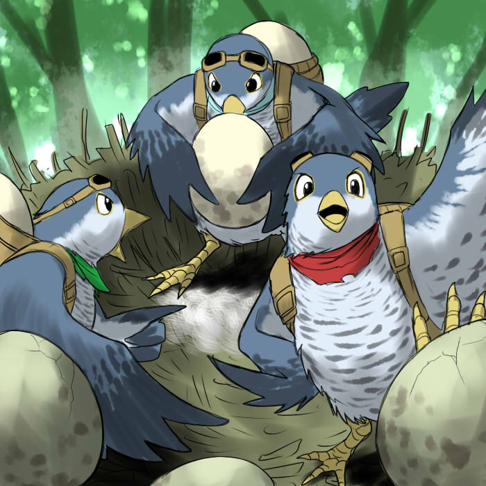 3羽(トリオ)のカッコウ型モンスターによる、托卵(たくらん)です。